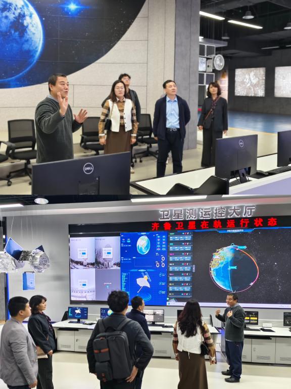 调研组实地参观了齐鲁卫星数据应用中心,深入了解研究院在自主卫星研发、遥感数据服务及黄河流域生态监测等领域的成果。