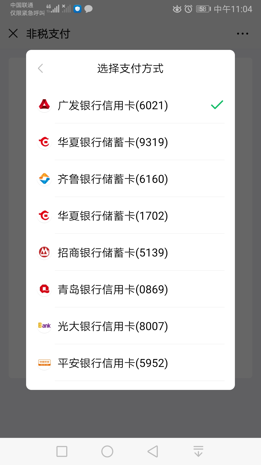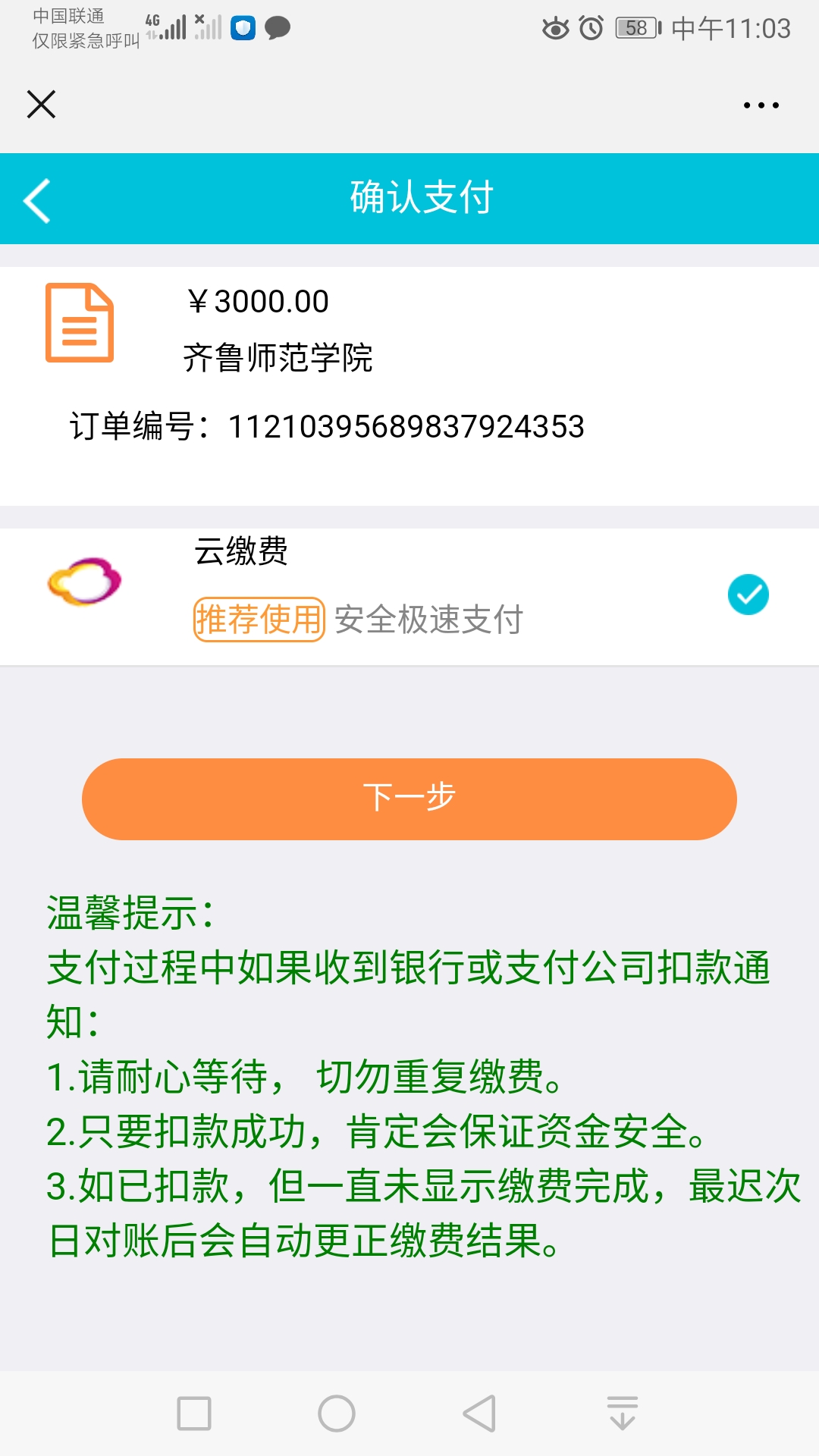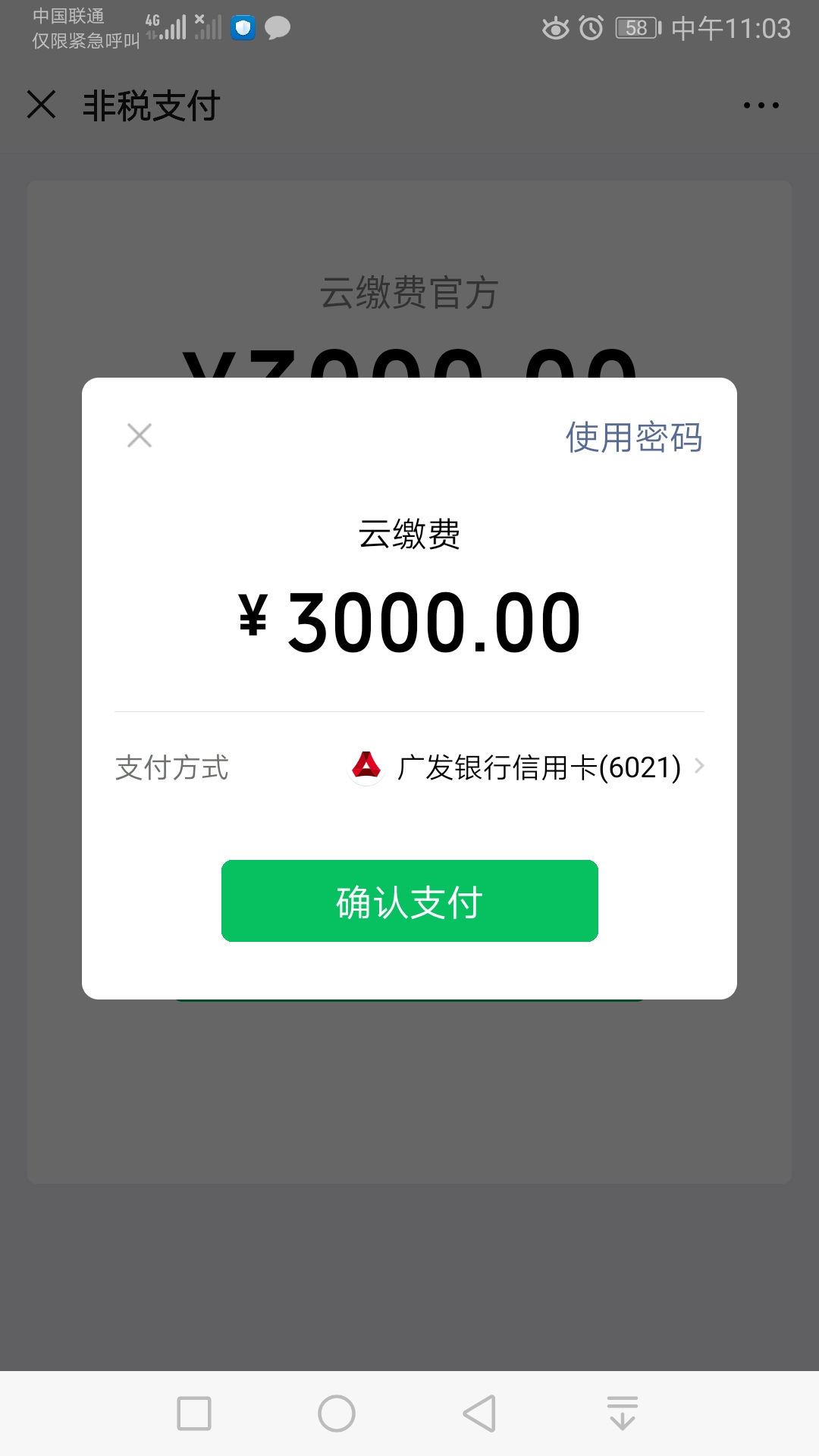 缴费前请确认微信零钱、绑定储蓄卡、信用卡资金余额充足。
