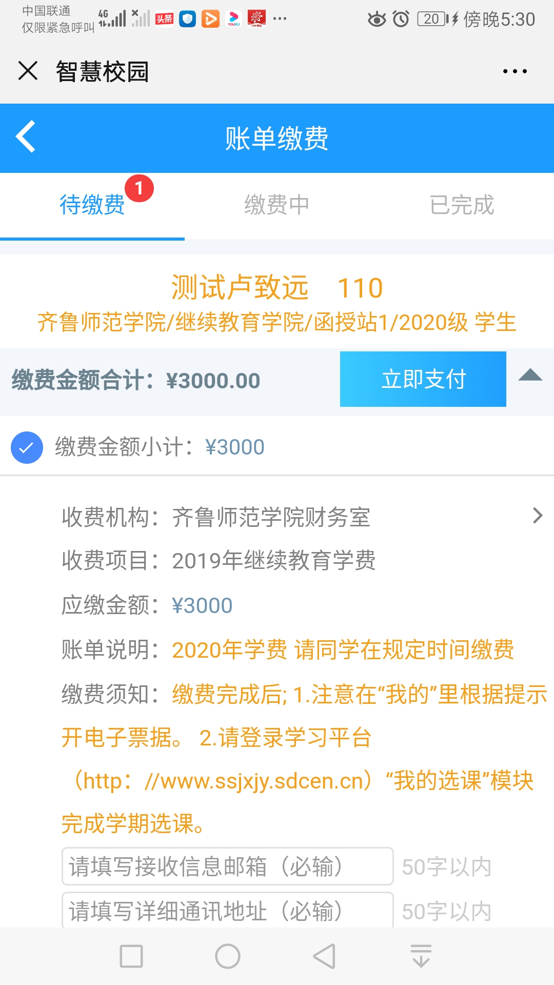 缴费注意事项: